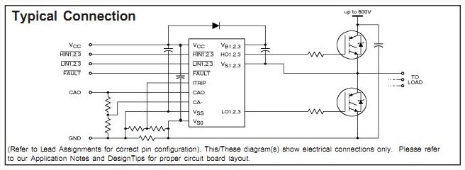 IR2130S features: (1)Floating channel designed for bootstrap operation Fully operational to +600V Tolerant to negative transient voltage dV/dt immune; (2)Gate drive supply range from 10 to 20V; (3)Undervoltage lockout for all channels; (4)Over-current shutdown turns off all six drivers; (5)Independent half-bridge drivers; (6)Matched propagation delay for all channels; (7)2.5V logic compatible; (8)Outputs out of phase with inputs; (9)Cross-conduction prevention logic; (10)Also available LEAD-FREE.